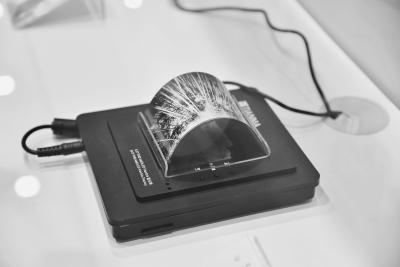 一塊厚度不足0.2毫米的顯示屏以超過200度的角度彎曲折疊,畫麵依然能清晰顯示。“京東(dong) 方”工作人員介紹,這種屏幕柔性顯示技術將與(yu) 可穿戴設備等緊密結合,可以把顯示屏貼在水杯上,嵌入衣服、背包、珠寶裏。