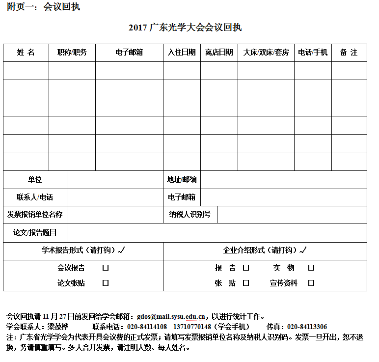 八、會(hui) 議注冊(ce) 費及相關(guan) 費用:(學會(hui) 聯係人:梁葆樺 E-mail:gdos@mail.sysu.edu.cn 電話:020-84114108 13710770148)