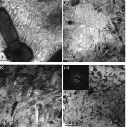 (a) 基體(ti) ; (b) 高密度位錯; (c) 位錯胞; (d) 表層納米晶