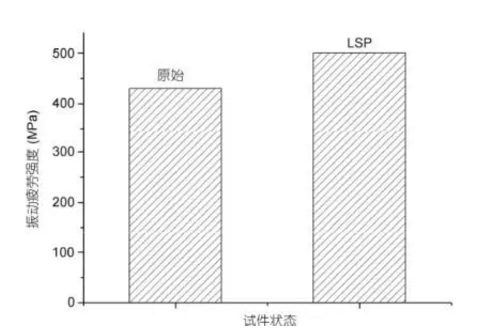 為(wei) 考核熱處理對疲勞性能的影響,分別對原始樣品、激光衝(chong) 擊強化、強化後900℃/10h熱處理三種狀態的試片進行振動疲勞試驗對比。