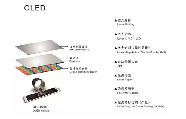 針對OLED顯示屏的生產(chan) ,大族激光顯視與(yu) 半導體(ti) 裝備事業(ye) 部已成功為(wei) 客戶提供以下四類解決(jue) 方案: