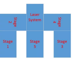 E字形除了上述形式,還有下麵的變種形式。我曾經參觀的一個超快激光加工實驗室就是此種布局。