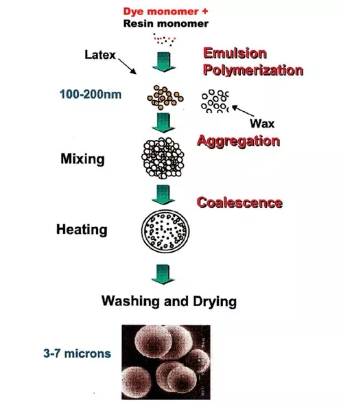 該項目使用分子態染料技術替代國外現有粒子態顏料技術創製出性能優(you) 良的染料單體(ti) ,並通過調整聚合單體(ti) 的配比和特殊添加的方式研製出適合打印機性能的樹脂,而後選擇適當溶劑將樹脂和染料及各類添加劑共溶,得到均一溶液,再通過噴霧幹燥的方式得到性能均一的色粉微球,最後通過調整外添的方式得到適合不同機型的激光打印彩粉。
