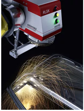 一種流行的焊接應用是激光遠程掃描焊接,其中光束傳(chuan) 送由振鏡掃描係統控製,在操縱光束的同時一並協調機器人通過其路徑的運動過程。該技術非常適用於(yu) 高產(chan) 量的汽車車身焊接應用以及其它打標和表麵處理等特殊應用領域。當機器人和振鏡係統的運動采用了同步協調控製時,可實現更高的產(chan) 能。越來越多的銘牌製造商正將鋁材用作汽車車身結構材料並采用了“A”級表麵處理工藝。當前,複雜的車身形狀已然愈發流行,並且基於(yu) 安全考量集成了各種傳(chuan) 感器。這裏麵臨(lin) 的挑戰是如何對車身形狀進行成形處理,以隱藏傳(chuan) 感器,從(cong) 而不會(hui) 破壞汽車的美學質感。