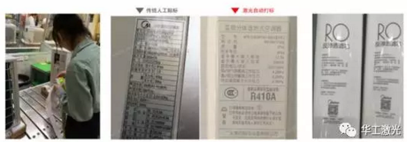 隨著全社會(hui) 家電保有量的持續增加,家電參數標簽的標刻工藝和環保水平也引起了產(chan) 業(ye) 界的重視。據了解,傳(chuan) 統的家電產(chan) 品參數標簽通常采用PET、PVC、銅版紙等材料,需先製作,再由人工粘貼至機身上,不但粘貼效率低,而且標簽還容易被撕破、貼偏、鼓泡等,需要消耗大量標簽紙等耗材。這種打標方式耗材成本高、不環保,同時需要增加人力和生產(chan) 時間。