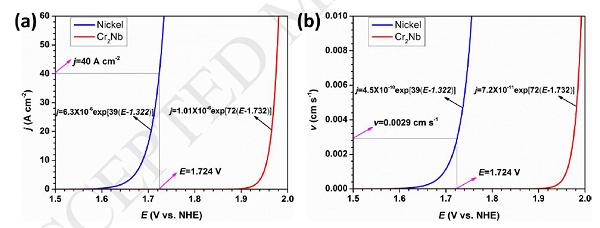 (3) 兩部分電流密度效率曲線幾乎完全相同。此外,析氧反應劇烈的發生,在高電流密度下產生高價金屬陽離子,消耗大量電荷,使電流效率小於100%。