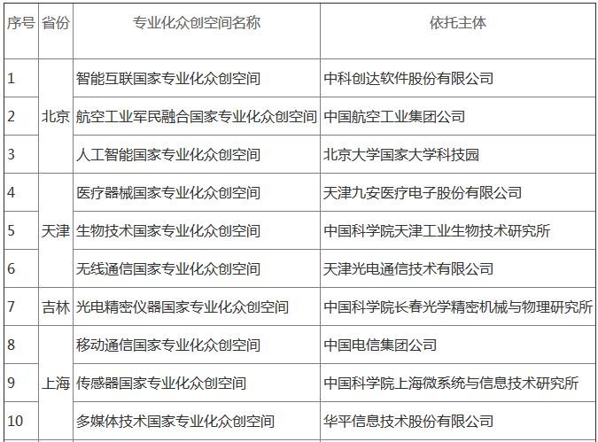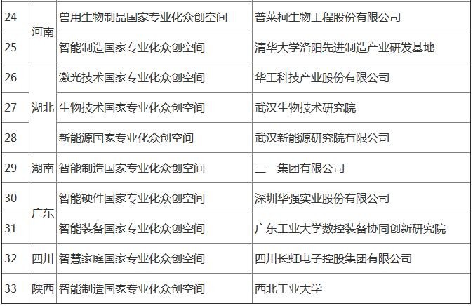 第二批國家專業化眾創空間示範名單
