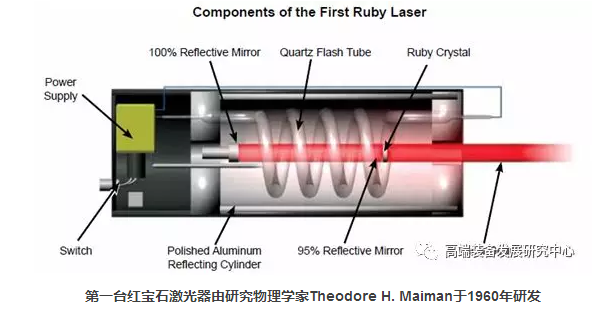 第一台紅寶石激光器由研究物理學家Theodore H. Maiman於(yu) 1960年研發