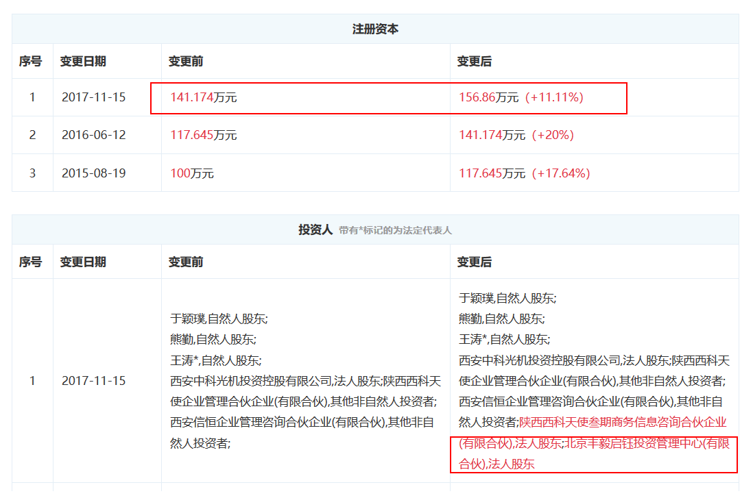 據了解,陝西西科天使叁期商務信息谘詢合夥(huo) 企業(ye) (有限合夥(huo) )為(wei) 上一輪投資方西科天使基金的投資實體(ti) ,北京豐(feng) 毅啟鈺投資管理中心(有限合夥(huo) )為(wei) 北京豐(feng) 毅投資的投資實體(ti) 。