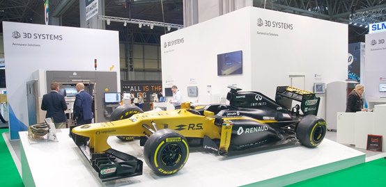 今年TCT展會上,合作夥伴3D Systems在展位上展示了大量支撐賽車排氣係統的座椅夾具。這些夾具均采用SLA技術打印,即排氣係統的金屬端采用3D Systems的DMLS技術打印而成。這些並非是簡單的部件製造,但利用3D Systems技術,在製造夾具、排氣係統上起到了很大幫助。