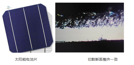 采用Amber係列高功率皮秒激光器,切割出來的太陽能電池在切割道隱裂,芯片抗彎強度以及電池成品良率等方麵均優(you) 於(yu) 納秒激光器。