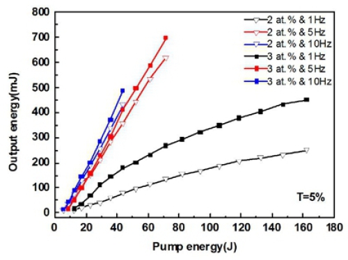 圖4.不同頻率和泵浦功率下2at.% Cr,Er:YSGG和3at.% Cr,Er:YSGG晶體(ti) 的激光輸出