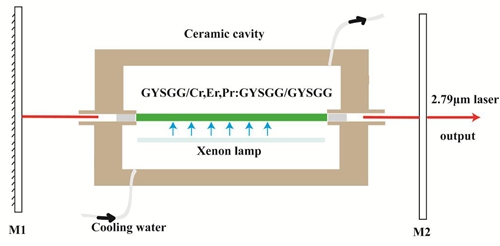 圖1.氙燈泵浦鍵合GYSGG/Cr,Er,Pr:GYSGG激光晶體(ti) 的示意圖