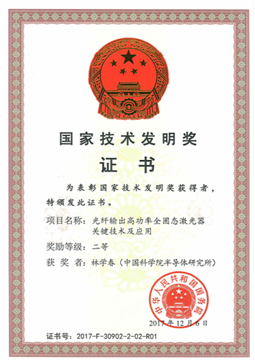 會(hui) 上,以中科院半導體(ti) 所研究員、江蘇中科四象激光科技有限公司首席專(zhuan) 家林學春研究員及江蘇中科四象激光科技有限公司總經理林培晨為(wei) 發明人代表的“光纖輸出高功率全固態激光器關(guan) 鍵技術及應用” 項目榮獲國家技術發明獎二等獎。