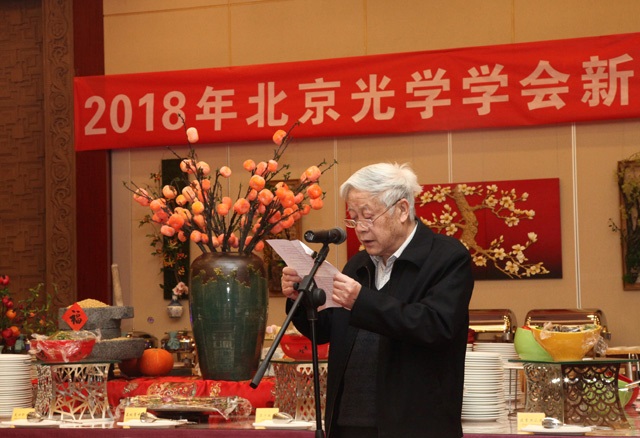 新春團拜會(hui) 由學會(hui) 理事、青年工作委員會(hui) 副主任楊登才博士主持。在熱烈的掌聲中,北京光學學會(hui) 理事長許祖彥院士致新春賀詞。許祖彥院士說,“在2018年到來之際,我代表北京光學學會(hui) ,向出席團拜會(hui) 的各位朋友們(men) 致以新春的祝福!向金國藩先生和周立偉(wei) 先生兩(liang) 位學會(hui) 名譽理事長致以崇高的敬意!”