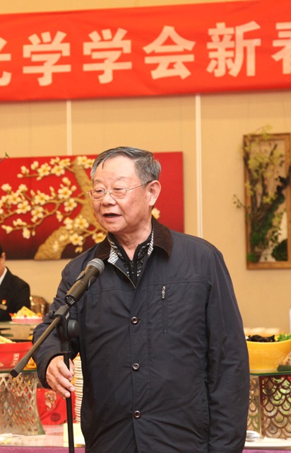圖10、學會(hui) 專(zhuan) 家委員會(hui) 副主任張書(shu) 練教授(左)和學會(hui) 副理事長李天初院士(右)及夫人(中)在團拜會(hui) 上合影留念。