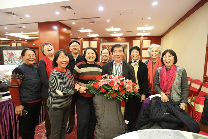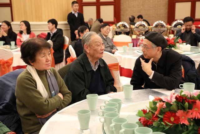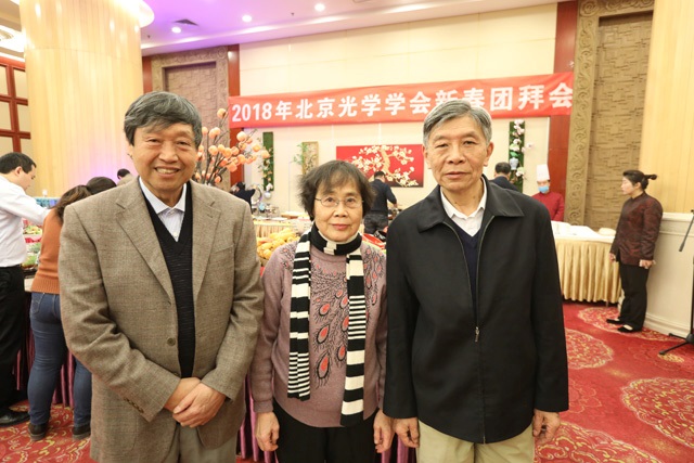 圖16、金國藩院士(左)和夫人段老師(中)、周壽桓院士(右)在團拜會(hui) 上。