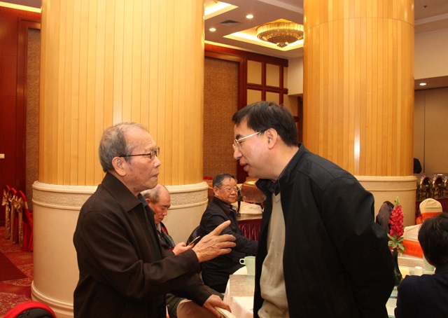 圖18、周壽桓院士(左)和北京理工大學高春青教授(右)在團拜會(hui) 上親(qin) 切交談。