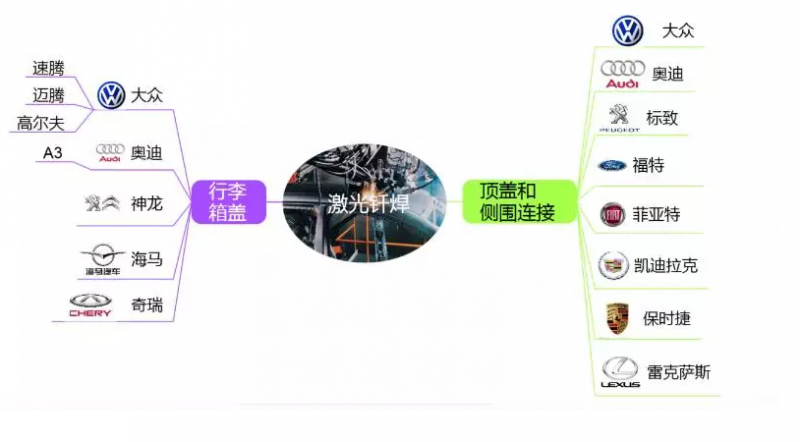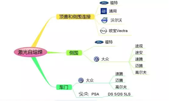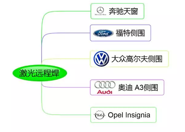 德國大眾(zhong) Touran轎車的激光焊縫總長度達到了70m。隨後,奧迪、速騰、高爾夫及Passat等品牌的車頂采用了激光焊接技術,通用、豐(feng) 田、福特、寶馬、奔馳等公司陸續均采用了激光焊接技術。