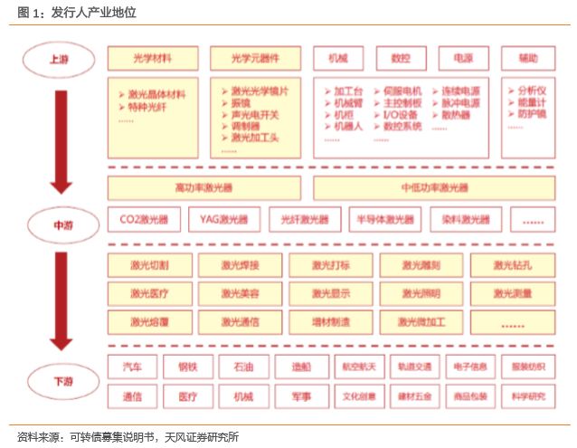大族激光成立於(yu) 1999年,主要從(cong) 事激光加工設備的研發、生產(chan) 和銷售。整體(ti) 來看,作為(wei) 中國領先、世界知名的相關(guan) 設備生產(chan) 商,公司處於(yu) 產(chan) 業(ye) 鏈中遊,主要從(cong) 機床、光學材料、電子元器件等上遊行業(ye) 獲取原始的材料設備,並最終將激光加工設備應用於(yu) 電子產(chan) 品製造、汽車製造、金屬加工等下遊行業(ye) 。