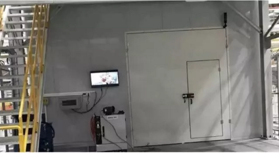 此外整個(ge) 激光焊接區域設置有5個(ge) 緊急停止按鈕, 分別置於(yu) 安全門旁、激光房內(nei) 部、機器人控製器上和激光櫃上。這些緊急停止按鈕可以在緊急狀態下停止工位設備的運行,在線監控可以實時監控機器人的作業(ye) 情況。