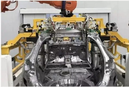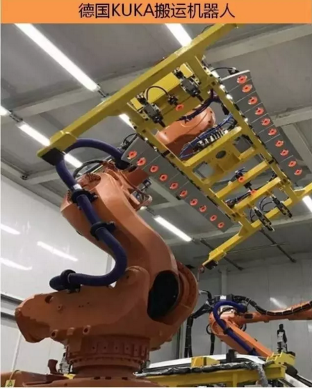 德國KUKA公司KUKA/KR420的機器人,承重超過420公斤,負責頂蓋定位工裝夾具的搬運。