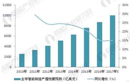 圖表2:2010-2017年全球智能製造產值規模測算(單位:億美元,%)
