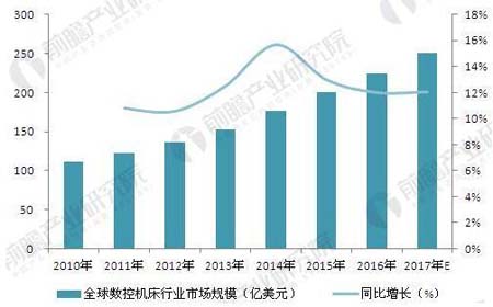 數控機床智是能製造業的重要組成部分,近年來數控機床不斷高端化、智能化,為智能製造行業的發展提供了有力保障。在2016年全球機床電子市場中,數控係統的市場規模為224億美元,占機床電子市場總規模的63.9%;預計2017年數控係統的市場規模將達到251億美元左右。