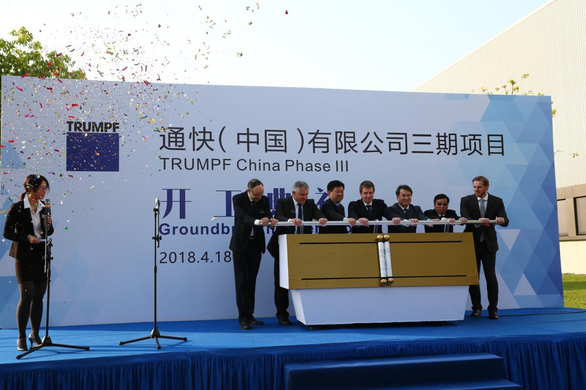 在技術博覽會的首日,通快還隆重舉行了太倉工廠三期建造工程項目的動工儀式。Hirschgaenger先生向我們介紹道,三期工程總投資6700萬,占地7800平方米,預計今年12月底可完工。“它的建造對於滿足客戶需求有著重要意義,尤其是他們對於智能製造和工業4.0解決方案相關培訓和資質的需求。同時,我們也會進一步改善員工相關的基礎建設和物流通道,以靈活適應未來的業務發展。”值得一提的是,總投資8300多萬人民幣以及建築總麵積將達 8780平方米的四期工程也已在籌劃中。