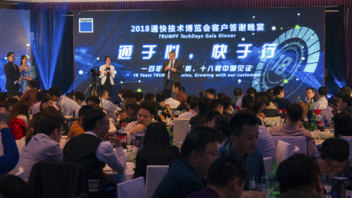 4 月 18-21 日, 以“通於心,快於行——一百年德國品質,十八載中國見證”為主題的“2018 通快技術博覽會(TRUMPF TechDays)”在通快中國太倉工廠隆重舉行。為期四天的博覽會共吸引了來自全國各地的鈑金製造商、零部件製造商、動力電池製造商、集成商等1400多人次的踴躍參觀。現場每日都人潮湧動,來賓們興致盎然地見證和欣賞了通快在引領鈑金加工及激光技術領域中的最新應用成果。