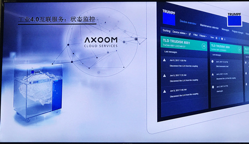 Kuehnle先生表示,如今能提供一整套智能激光製造的解決方案。“從新一代TruDisk激光器,到智能激光加工頭I-PFO,以及各種過程監控傳感器,如VisionLine圖像識別定位傳感器、SeamLine及SeamLine Remote焊縫追蹤和焊接質量監控傳感器。以這一係列的硬件作為基礎,可實現對設備性能、運行狀態、加工過程、加工結果的全程監控,以最大程度的保證生產的質量可靠性。”據悉 ,通快狀態監控服務(Condition based monitoring)是接軌工業4.0不可或缺的一環,通過實時監控通快設備內部傳感器提供的信號,可判斷設備當前狀態及預測其未來的狀態,並提供相應的維護保養建議。從而減少非計劃內停機時間,提高生產效率,降低生產成本。