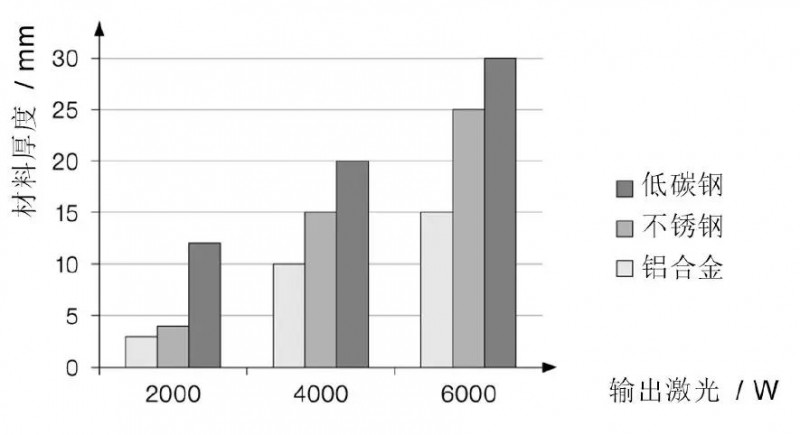激光功率應和加工類型、材料種類和厚度相匹配。功率必須足夠高以至於(yu) 工件上的功率密度超出加工閾值。
