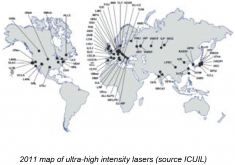 目前,世界上很多國家都在研發能夠發出太瓦級功率的超高功率激光器。這類激光器主要應用於物質研究、基礎物理學、核聚變、強磁場與激光粒子加速等領域。目前,全球最著名的研究機構包括:LMJ at CEA, France; NIF at LLNL, USA, Rutherford Appleton Laboratory in UK。