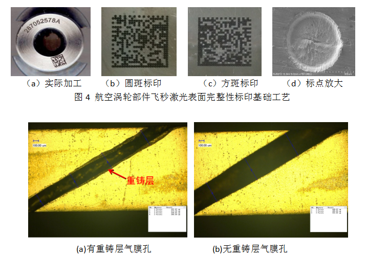 1)目前已完成所有專(zhuan) 用激光工藝開發:針對航天石英材料表麵圖案製造,完成三維模型建立、精細加工工藝參數研究,進行了平麵大麵積加工實驗,可滿足項目要求;針對航天器薄膜材料表麵圖案製造,確定最優(you) 加工方式為(wei) 線光斑定點刻蝕;針對航空發動機熱端部件激光標印,確定采用飛秒激光打孔標印,可實現100%識別;針對航空發動機葉片陶瓷型芯激光修理,確定采用高重頻皮秒超快激光,得到毛刺飛邊激光修理參數;針對航空發動機陶瓷複合材料飛秒激光加工,得到了高質量微槽激光加工方案,微槽尺寸一致性明顯提高;得到了無重鑄層氣膜孔高效加工工藝,可實現渦輪葉片整體(ti) 氣膜孔加工。