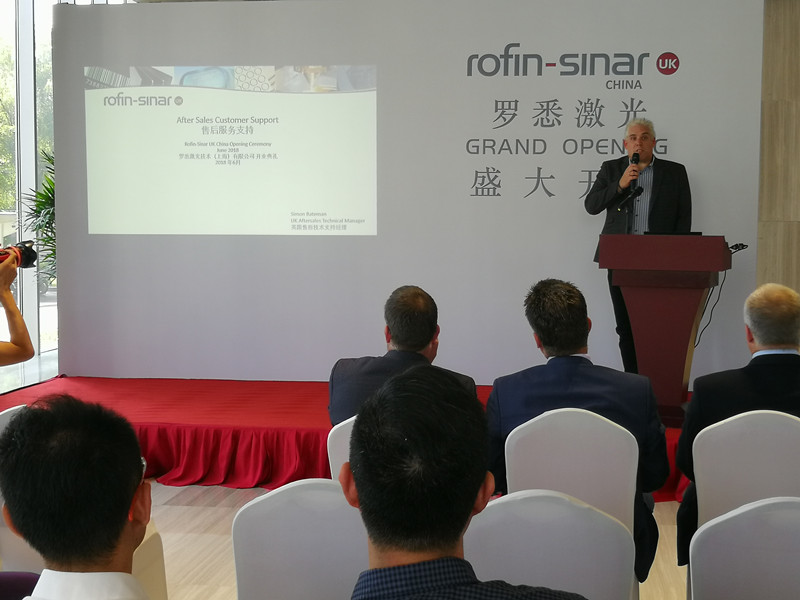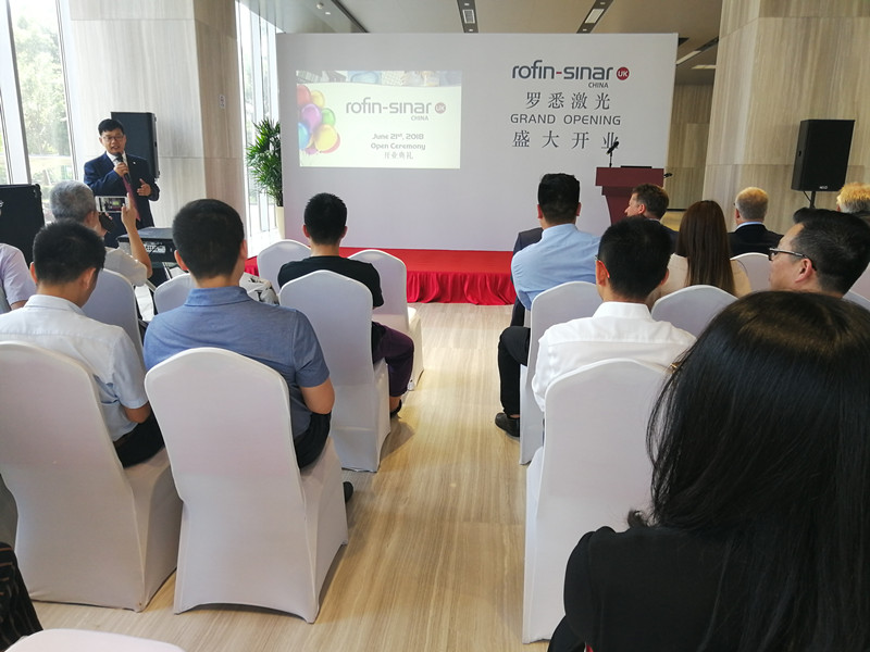 來自C.M. R GmbH 的Christian Zimmer先生為(wei) 開業(ye) 典禮致辭。創可激光公司徐強先生、大族粵銘激光王軍(jun) 先生、蘇州菲鐳泰克公司楊海青先生、《激光製造商情》主編邵火先生等受邀參加了開業(ye) 典禮並致辭,表達了對羅悉激光的祝福與(yu) 期望。英國羅芬悉那激光公司銷售總監Andrew Chambers 介紹公司當前的主要產(chan) 品與(yu) 工業(ye) 應用。售後服務經理Simon Bateman 先生介紹了在中國的售後服務規劃。