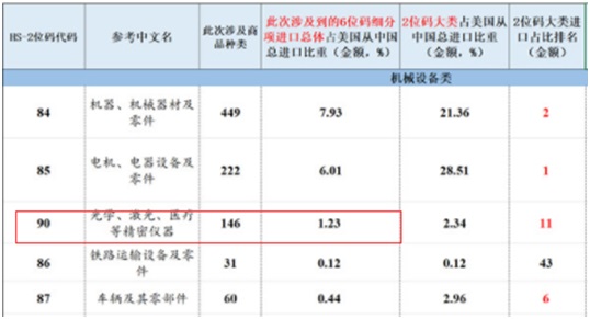 本次征稅中,光學、激光、醫療等精密儀(yi) 器類產(chan) 品占據美國進口中國所有產(chan) 品比重為(wei) 1.23%。