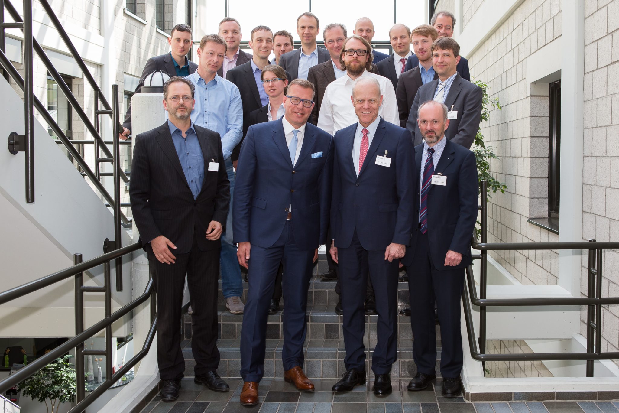 弗勞恩霍夫卓越集團的合作夥(huo) 伴參加了2018年5月2日在亞(ya) 琛舉(ju) 行的啟動會(hui) 議。協調員:集群總監Reinhart Poprawe教授,Fraunhofer ILT(前排,右起第二位)和AndreasTünnermann教授,Fraunhofer IOF(前排,左起第二位)。