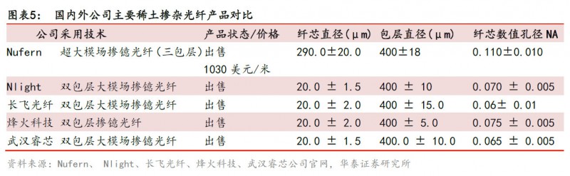 增益介質主要作用是產(chan) 生光子,一般采用摻雜稀土元素的光纖作為(wei) 增益介質。泵浦源的作用是對增益介質進行激勵使其輻射發光。光纖介質與(yu) 國外最先進技術尚存在差距,在售產(chan) 品參數上較接近但是穩定性和一致性有待提高。國內(nei) 廠商雖然掌握泵源製造技術,但核心激光芯片仍依賴進口。