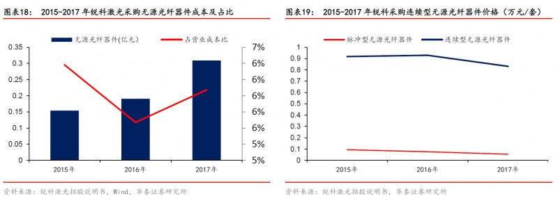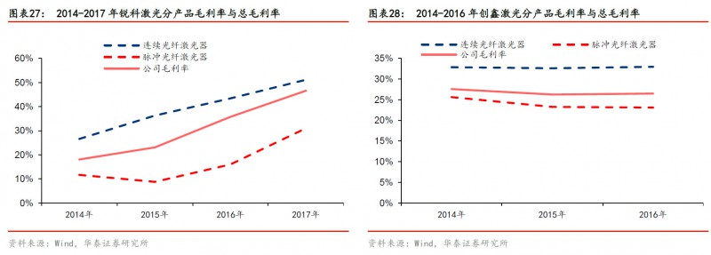 從(cong) 國外龍頭公司情況來看,整合元器件產(chan) 業(ye) 鏈可以帶來較高毛利率。國內(nei) 廠商目前毛利率水平較高,但增益介質、激光芯片和光纖光柵仍依賴於(yu) 進口,核心元器件若進一步國產(chan) 化有望為(wei) 業(ye) 績提供充足支撐。