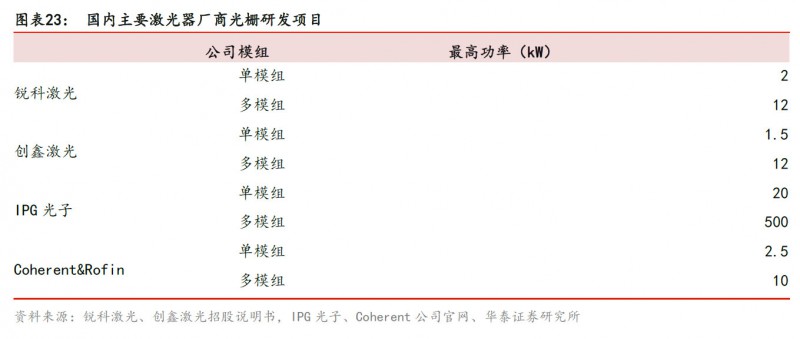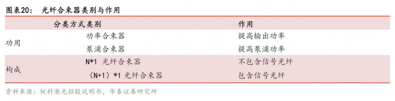 光纖合束器主要作用是進行光束合成增大輸出功率。目前國內(nei) 主要激光器製造商銳科與(yu) 創鑫都已掌握合束器製造核心技術並實現規模化生產(chan) ,但是國內(nei) 廠商在輸出功率上與(yu) 國外龍頭公司Coherent、IPG等仍有差距。