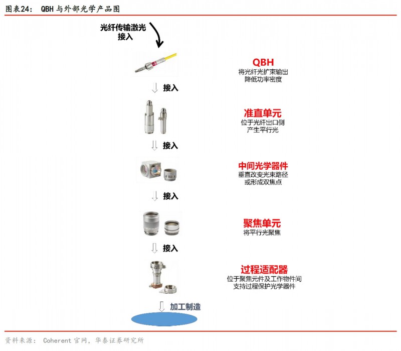 光纖輸出器件主要作用是進行光纖擴束降低功率密度以便使用,國內(nei) 主要激光器製造商銳科與(yu) 創鑫已經掌握QBH及準直器技術,目前國內(nei) 廠商QBH器件部分參數上已經與(yu) 國外廠商相當。