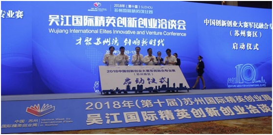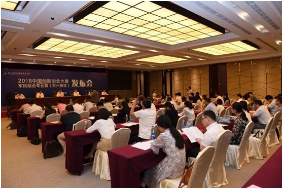 中國創新創業(ye) 大賽軍(jun) 民融合專(zhuan) 業(ye) 賽(蘇州賽區)啟動儀(yi) 式和發布會(hui) 現場
