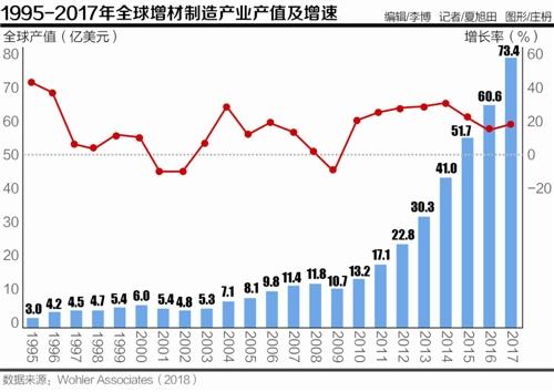 2017年,全球增材製造(即3D打印)產業產值73.36億美元,同比增長21.0%,增速較去年提高了3.6個百分點。