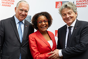 歐洲專利局局長BenoîtBattistelli與法語國家國際組織秘書長MichaëlleJean和陪審團主席Thierry Breton
