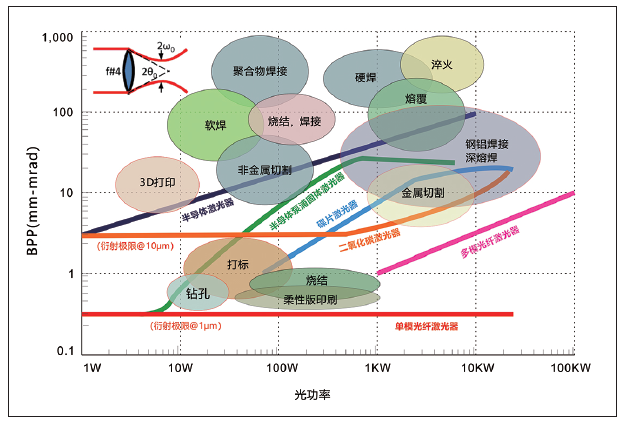 圖1:各類型激光器的亮度以及加工應用對光源特性的需求[1]