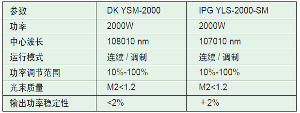 單模光纖激光器,是指輸出激光為單一橫模式(基模)的光纖激光器,單模激光器的最明顯特征是光束質量評價因子M2<1.2。需要指出的是,許多廠家標稱的“單模”激光器實際為“單模塊”激光器,即在拓撲結構上為一對光纖光柵組成的諧振腔型激光器,單模塊激光器不一定是單模式激光器。千瓦級單模式光纖激光器的技術難度要遠大於同等功率的單模塊光纖激光器。湖南大科激光有限公司(以下簡稱“大科激光”)通過對高功率光纖激光器的物理瓶頸問題深入研究,設計了具有自主知識產權的工業用千瓦級單模光纖激光器,性能指標達到國外同功率單模光纖激光器的水平,如表2所示。