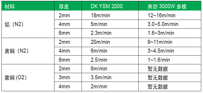 表4:DK YSM 2000 高反射率金屬材料切割速度