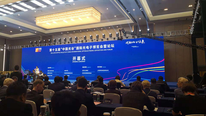今天上午,第十五屆“中國光穀”國際光電子博覽會(hui) 暨論壇(以下簡稱:光博會(hui) )開幕式在中國光穀科技會(hui) 展中心隆重舉(ju) 辦,正式宣布為(wei) 期三天的武漢光博會(hui) 拉開帷幕。