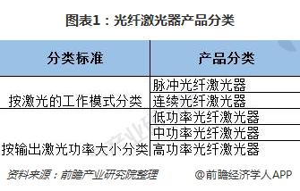 光纖激光器被稱為(wei) "第三代激光器",其突破了傳(chuan) 統激光器的局限性,所占空間更小,性能更好。從(cong) 光纖激光器的產(chan) 品分類來看,按照激光的工作模式,可以分為(wei) 脈衝(chong) 光纖激光器和連續光纖激光器兩(liang) 類;按照輸出的激光功率大小來看,可以分為(wei) 高、中、低功率光纖激光器三類。