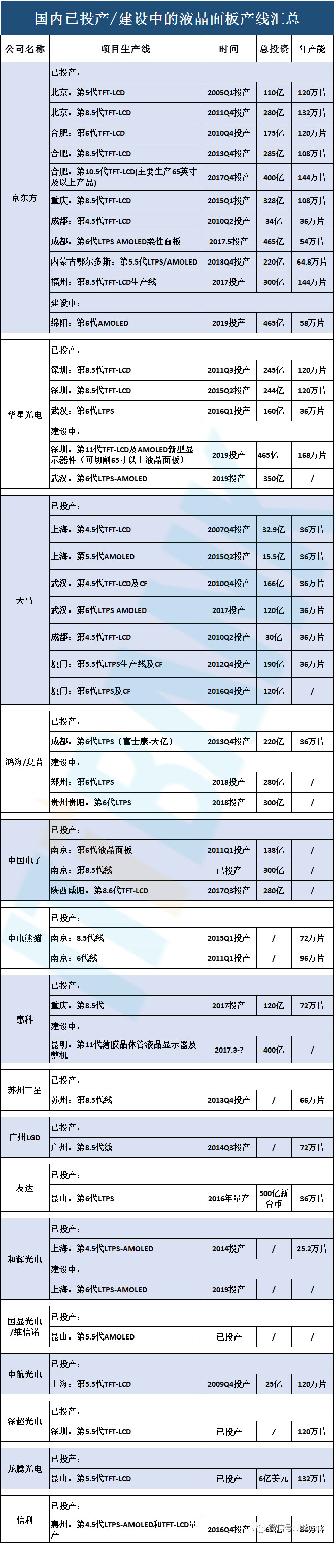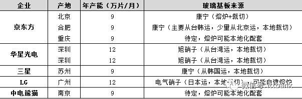 ▲國內(nei) 玻璃基板廠商已建產(chan) 能統計